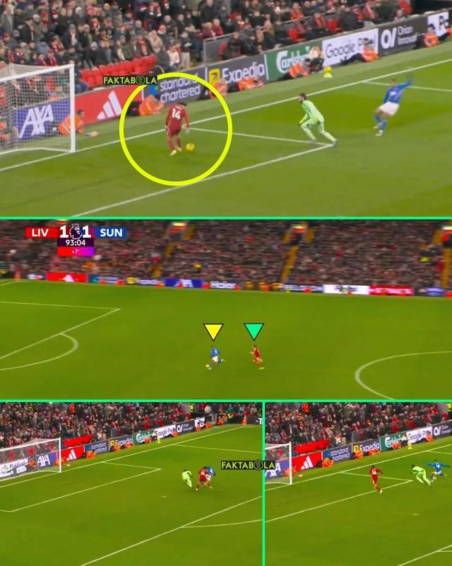 傷停補(bǔ)時(shí)第90+3分鐘,利物浦獲得角球機(jī)會(huì),全隊(duì)幾乎全員壓上。桑德蘭門(mén)將羅埃夫斯拿到皮球之后,直接大腳開(kāi)球達(dá)到前場(chǎng),替補(bǔ)登場(chǎng)的伊西多爾高速前插形成單刀并成功過(guò)掉門(mén)將阿利松,然而他的射門(mén)卻被狂奔半場(chǎng)高速回防的基耶薩成功解圍。