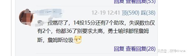 最后1個球迷說,如果換成詹姆斯14投3中,那會評論過萬。